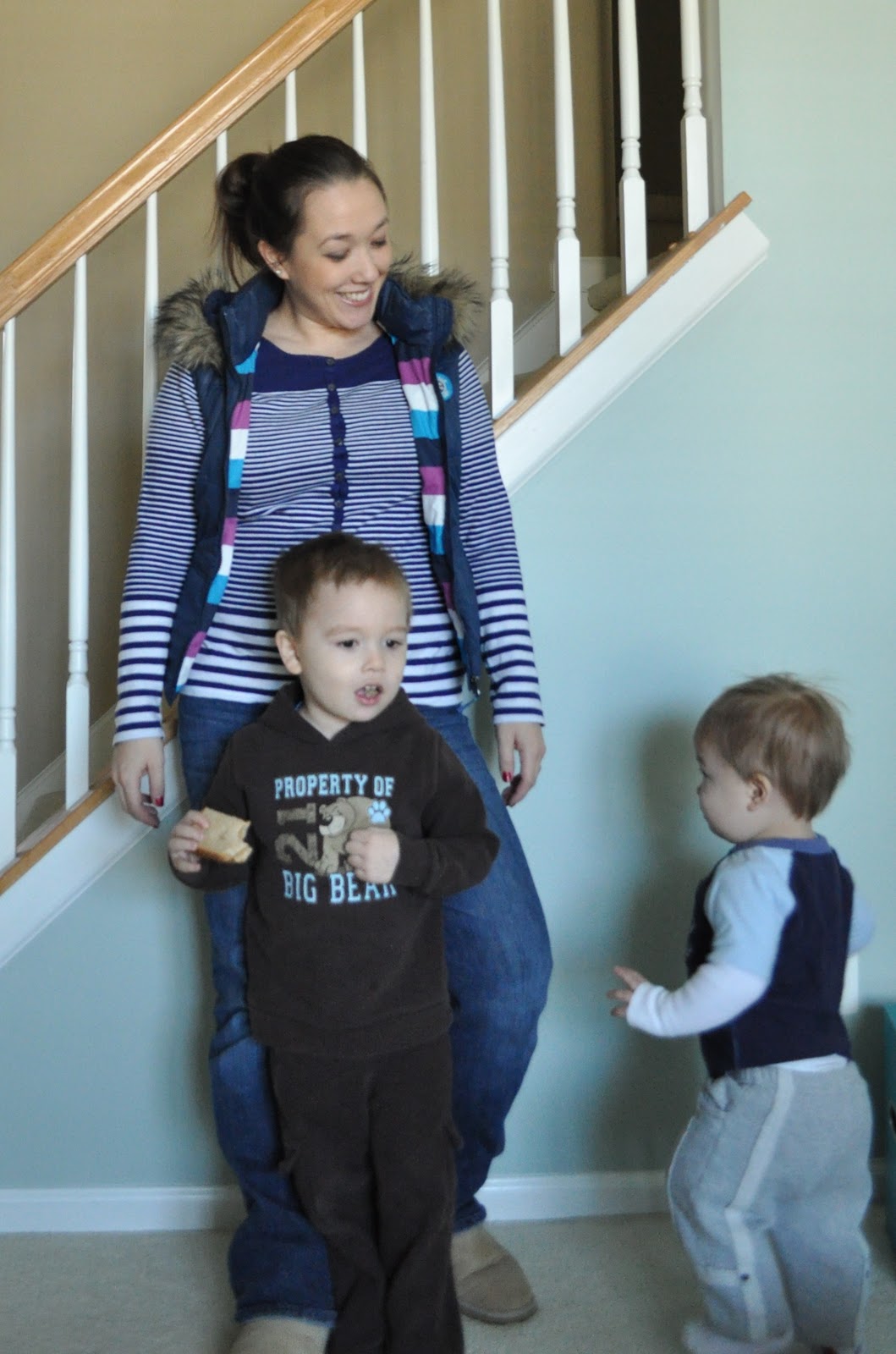 Oh and side note...I just got the remote for my camera and this was my first attempt at using it...and of course the little dude was super curious. I let him hold it....so I can officially say that HE took this picture of us. Proud mama...